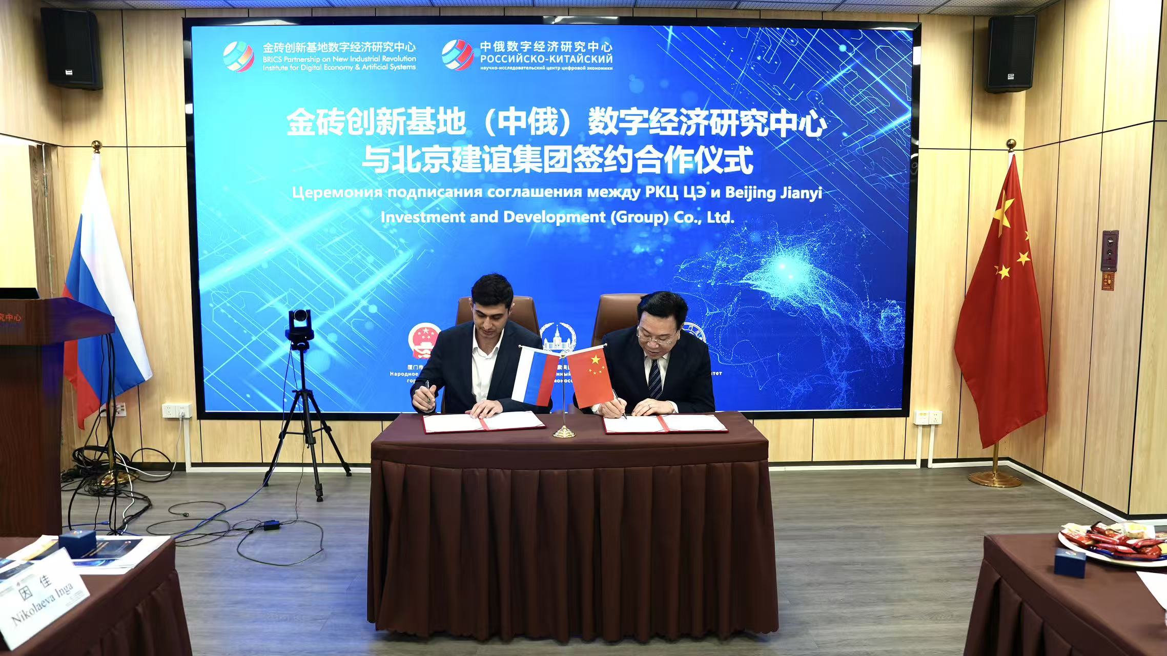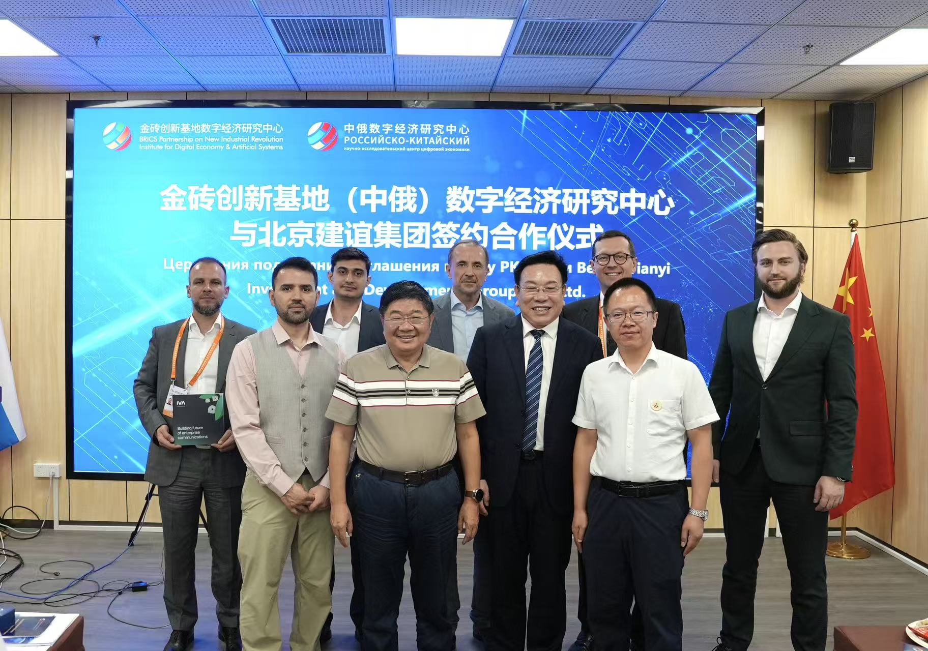 9月16日下午,金砖创新基地(中俄)数字经济研究中心(以下简称“中心”)举行Innopraktika俄罗斯创新实践基金中国创新中心揭牌仪式暨战略合作签约仪式。俄罗斯工业和贸易部副部长阿列克谢·格鲁兹杰夫(Alexey Gruzdev)出席揭牌仪式并致辞。出席本次活动的还有俄罗斯莫斯科市外国投资局局长阿列克谢・瑙莫夫(Alexey Naumov),对外经济和国际关系局副局长维亚切斯拉夫・马努伊洛夫(Vyacheslav Manuilov),Innopraktika创新工程中心执行第一副院长娜塔莉亚・波波娃(Natalia Popova),IVA Technologies公司第一副总经理马克西姆・斯米尔诺夫(Maksim Smirnov),北京建谊投资发展(集团)有限公司(以下简称“建谊集团”)董事长张鸣,以及中心外方执行主任宓河力(Mekhri Aliev)等。