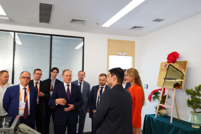 阿列克谢一行首先参观中心科研孵化基地、行政区域和成果转化场所,详细了解中心发展建设情况,并对中心的国际科研与产业合作工作成效予以高度肯定。揭牌仪式上,阿列克谢表示,创新中心的建立为两国创新资源整合共享注入新动力,期待未来这一平台能推动中俄两国深化产业合作,共同为全球数字经济发展贡献力量。